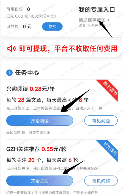 今天给大家分享的项目是:阅读文章关注类小任务赚钱平台